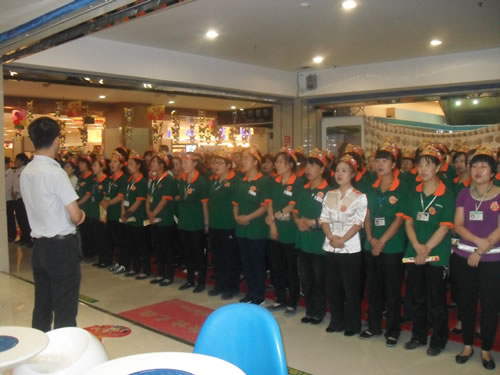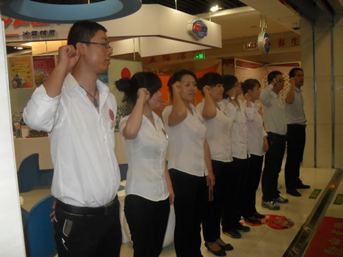 6、F6商品部管理人員帶領(lǐng)大家進(jìn)行店慶宣誓。