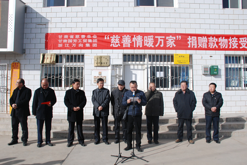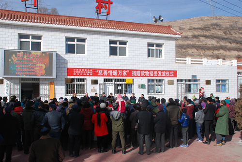 2016年1月21日由甘肅省慈善總會、甘肅國芳工貿(mào)集團(tuán)聯(lián)合開展的“慈善情暖萬家”捐贈物資接受發(fā)放儀式在青嵐山鄉(xiāng)大坪村隆重舉行。省慈善總會常務(wù)副會長張瑞堂同志、副會長張忠健同志,甘肅國芳工貿(mào)集團(tuán)副總經(jīng)理白海源先生,定西市政府副市長李斌同志及市區(qū)民政局、青嵐山鄉(xiāng)政府主要負(fù)責(zé)同志參加了儀式。省慈善總會聯(lián)合國芳工貿(mào)集團(tuán)籌措價值120萬元的衣物5100多件,資助青嵐山鄉(xiāng)3000多戶困難群眾,幫助他們解決穿衣方面的困難。