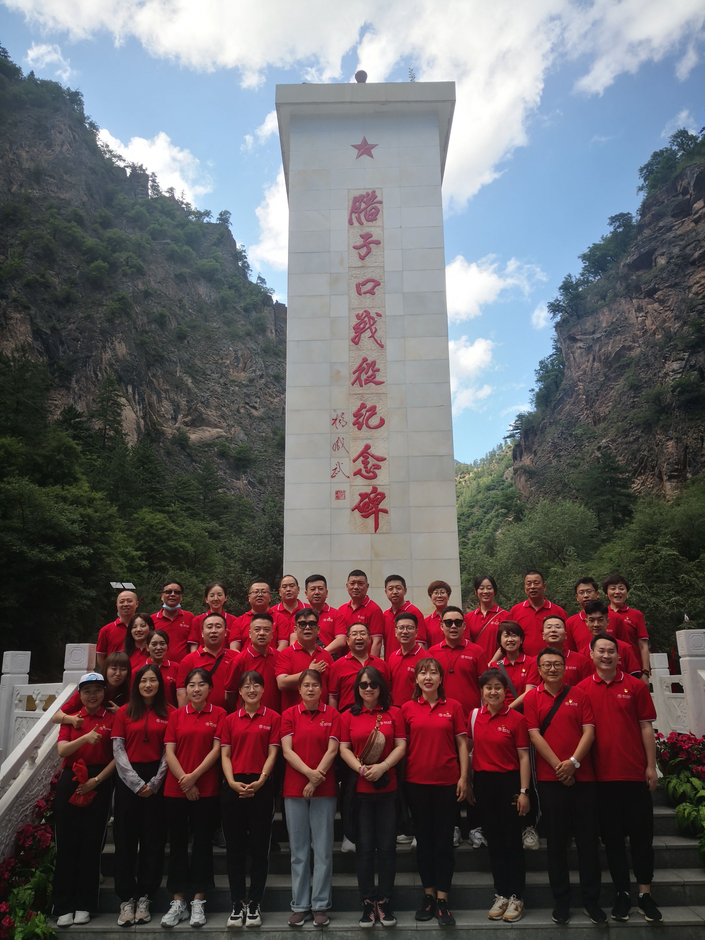 在臘子口戰(zhàn)役紀(jì)念館,集團(tuán)黨員重溫1935年9月紅軍挫敗敵人的嚴(yán)密封鎖、一舉突破“一夫當(dāng)關(guān) 萬夫莫開”的臘子口天險(xiǎn)的壯烈場面。徒步參觀了戰(zhàn)役紀(jì)念碑和復(fù)原后的臘子口敵雕堡,兩側(cè)的陡峭石崖,如刀劈斧削一般,中間是一個(gè)寬8米左右的隘口,臘子河從峽口奔涌而出,抬頭望去,只見一線青天,地形險(xiǎn)要,易守難攻。在場黨員紛紛感嘆如今美好生活的來之不易,進(jìn)一步堅(jiān)定了聽黨話、跟黨走的信念,進(jìn)一步鼓舞了加油、努力、再長征的干勁,進(jìn)一步激發(fā)了不斷奮進(jìn)的工作熱情。